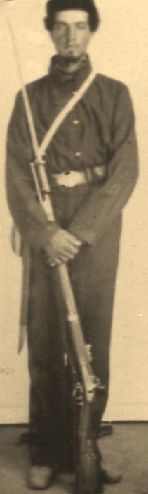 Pvt. Abraham N. Wolf, of Co. B, 47th Pennsylvania Volunteers, standing with his Mississippi rifle, circa 1861 (public domain).