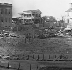 Earthen works surrounding the Confederate battery atop Saint John’s Bluff along the Saint John’s River in Florida, 1862 (J. H. Schell, public domain).