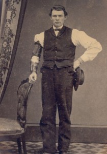Private Jacob Hertzog, Co. K, 47th Pennsylvania Volunteers, wearing the support device which facilitated his recovery from a gunshot wound during the Battle of Pocotaligo (George A. Otis, public domain).