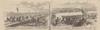 “Destruction of Railroad Track by Federal Troops” and “Attack on a Rebel Train by 48th Volr. RG.” (“The commencement of the battle near Pocotaligo River,” Frank Leslie’s Illustrated Newspaper, October 1862, public domain; click to enlarge). Note: The “48th Volr.” RG.” pictured here was most likely the 48th New York Volunteer Infantry.