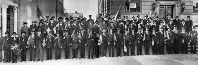 Surviving members of the 47th Pennsylvania Volunteer Infantry at their 1923 reunion, Odd Fellows Hall, Allentown, Pennsylvania (public domain).