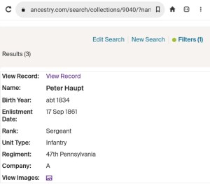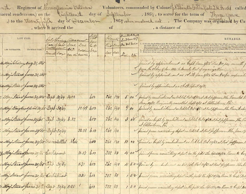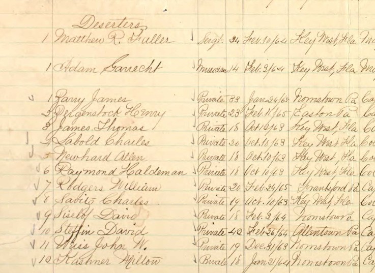 John Bartlow, William Finck, Samuel Haupt, Charles Marshall (as “Thomas Lothard”), Richard O’Rourke, and James Rhine were among multiple members of the 47th Pennsylvania Volunteer Infantry who would go on to be awarded the coveted title of “Veteran Volunteer” when they chose to re-enlist for additional tours of duty and helped to bring an end to one of the darkest times in America’s history.