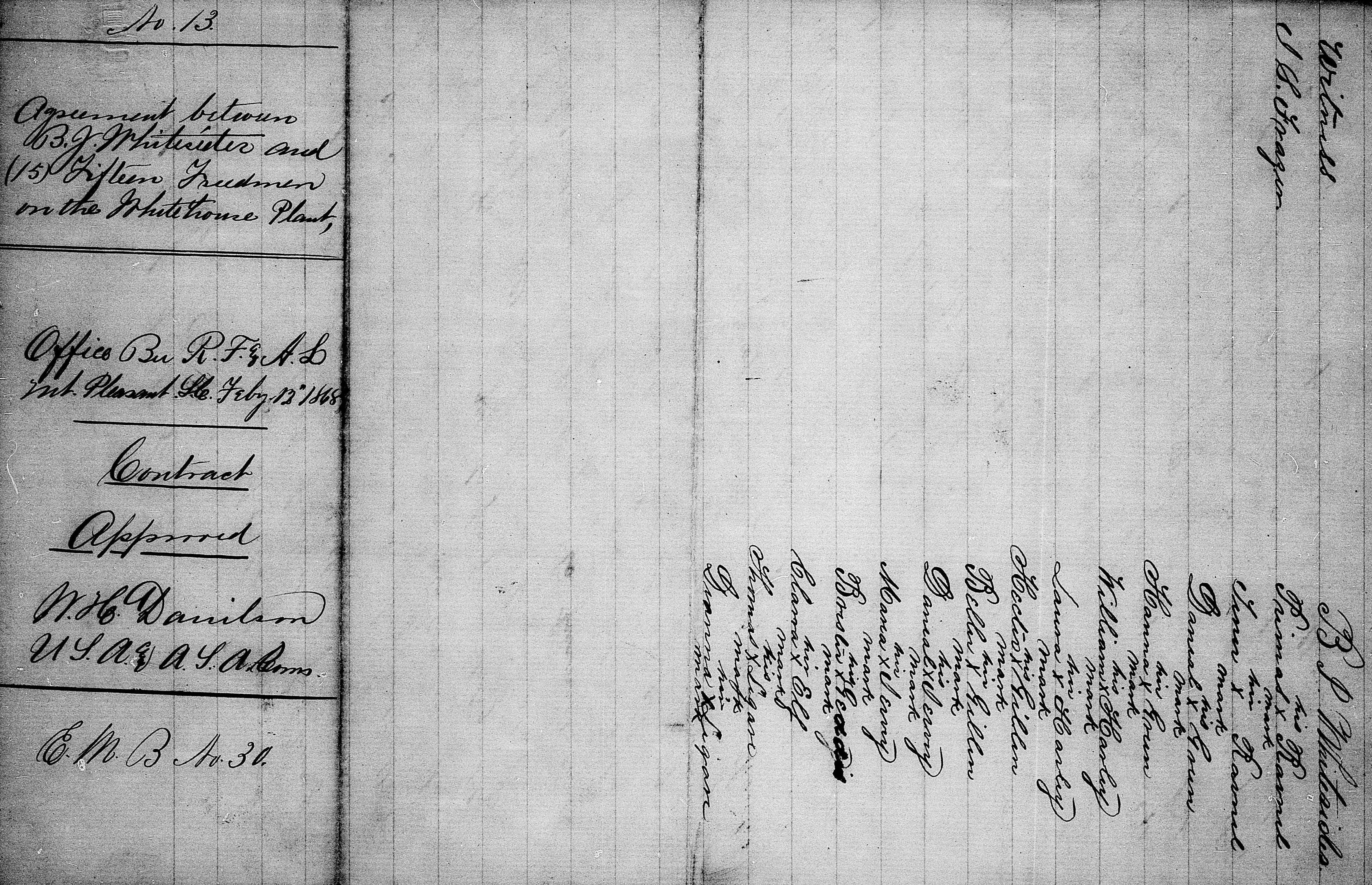 Despite those hints, it took quite some time to pick up this soldier’s trail again. Eventually, though, that pension index card data helped me to find a Freedmen’s Bureau contract for him which confirmed that he had indeed settled in South Carolina post-war. Dated February 12, 1868, this document also confirmed that he had been signed to a contract with 14 other Freedmen by the Mt. Pleasant, South Carolina office of the U.S. Freedmen’s Bureau to provide labor for the Whitehouse Plantation.