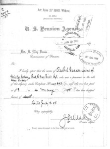 U.S. Pension Agency’s confirmation of Rachael (Richardson) Gethers’ date of death (U.S. National Archives and Records Administration, public domain; click to enlarge).