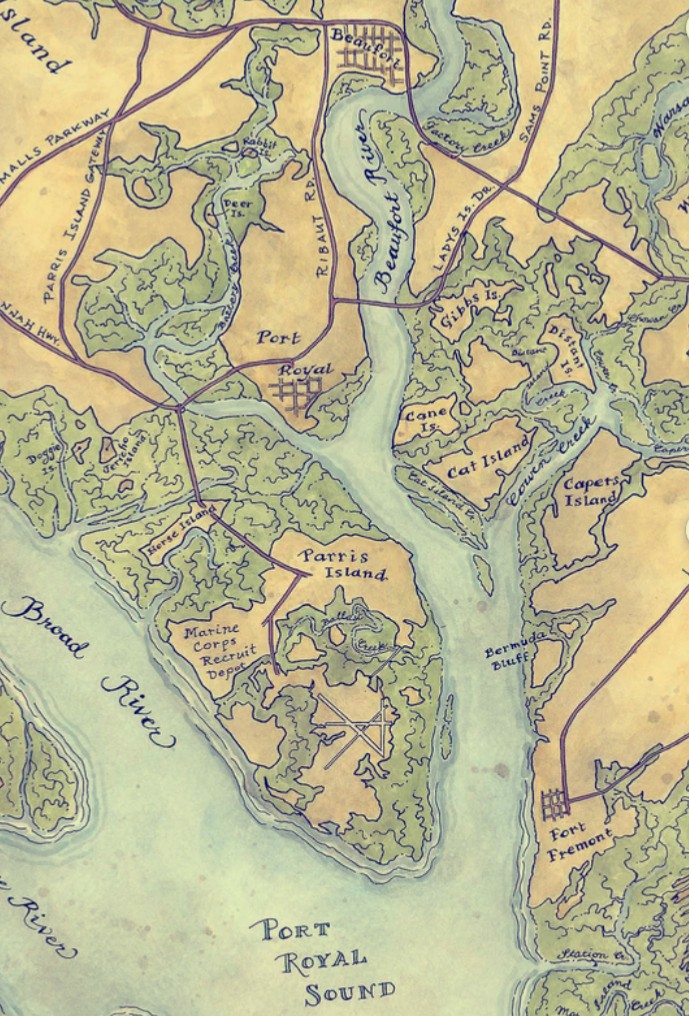 Horse Island, slightly above and to the left of Parris Island in Beaufort County, South Carolina (public domain; click to enlarge).