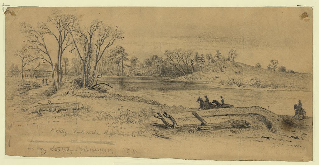 Kelly’s Ford on the Rappahannock River (Edwin Forbes, 10 February 1864, U.S. Library of Congress, public domain).