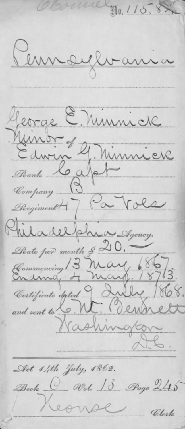 George E. Minnich’s U.S. Civil War Orphan’s Pension Award and Amount, 1867_pubdom