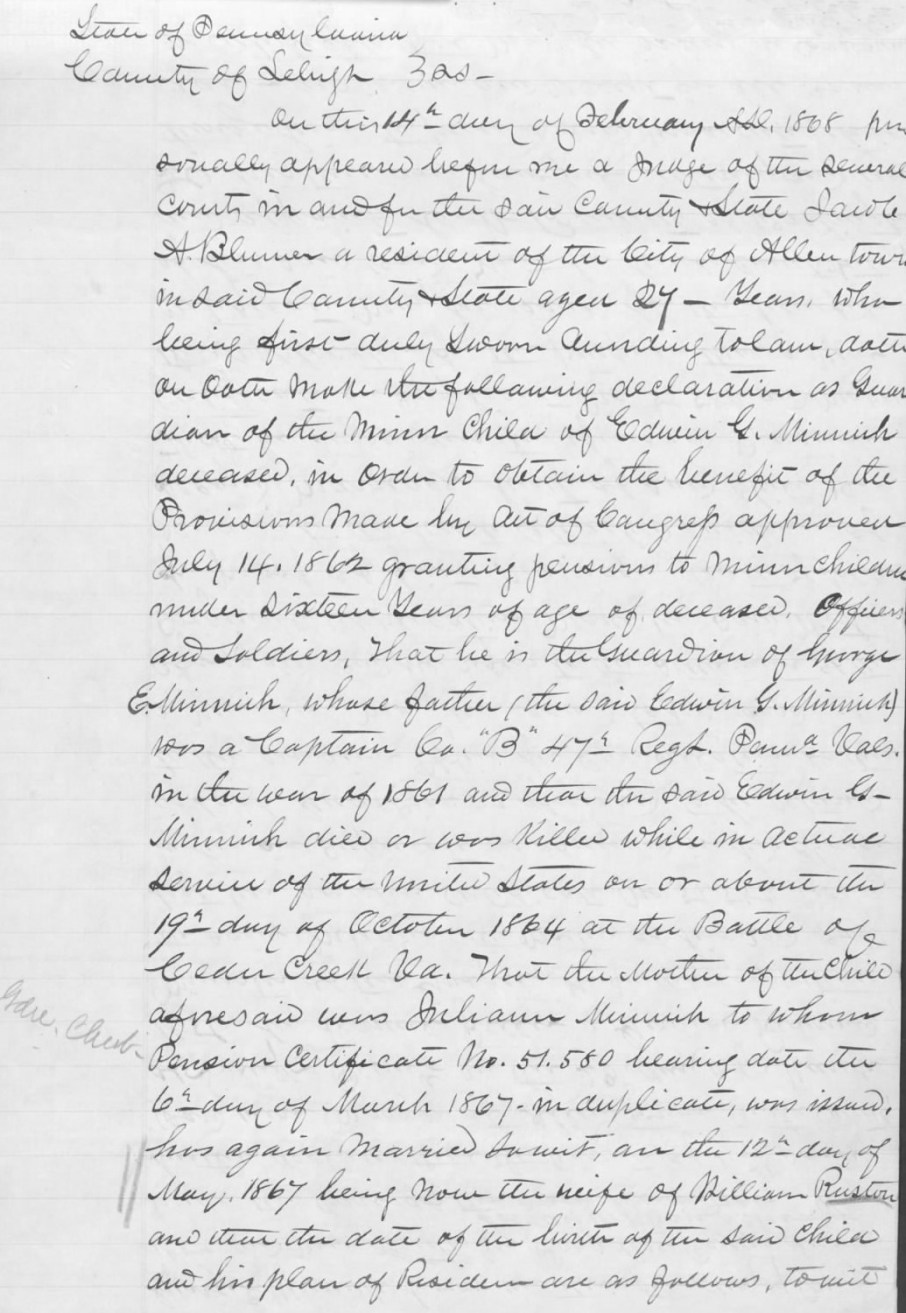 Guardian Jacob A. Blumer’s Feb 1868 Affidavit, pp. 1-2George E. Minnich’s U.S. Civil War Orphan’s Pension_pubdom