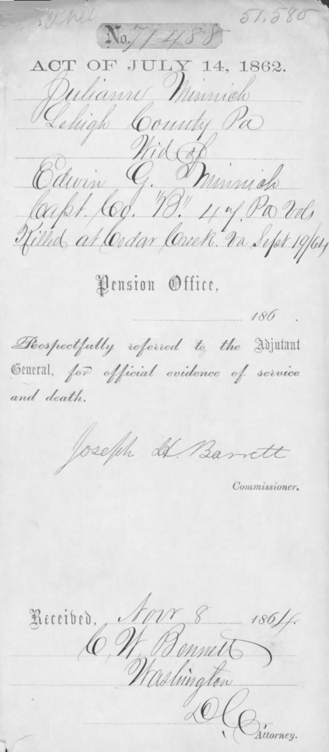 U.S Pension Bureau’s 8 Nov 1864 Confirmation of Capt. Edwin G. Minnich’s 1864 Death_pubdom