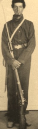 Private Abraham Nicholas Wolf, Company B, 47th Pennsylvania Volunteers, standing with his Mississippi rifle, circa 1861 (public domain).