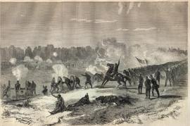 Following what some historians have called a rout by Confederates at Pleasant Hill and others have labeled a technical victory for the Union or a draw for both sides, the 47th Pennsylvanians fell back to Grand Ecore, where they remained for a total of eleven days (through 22 April 1864). After engaging in the hard labor of strengthening regimental and brigade fortifications, they then moved back to Natchitoches Parish on 22 April, arriving in Cloutierville at 10 p.m. that night after completing a 45-mile march. En route, the Union forces were attacked again—this time in the rear, but they were able to end the encounter fairly quickly and continue on.