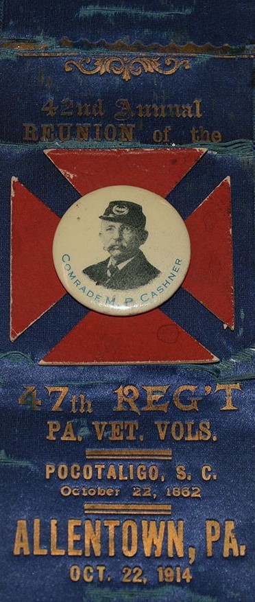 The 47th Pennsylvania Veteran Volunteers honored Milton P. Cashner at the regiment’s annual reunion in 1914 (public domain image; click to enlarge).