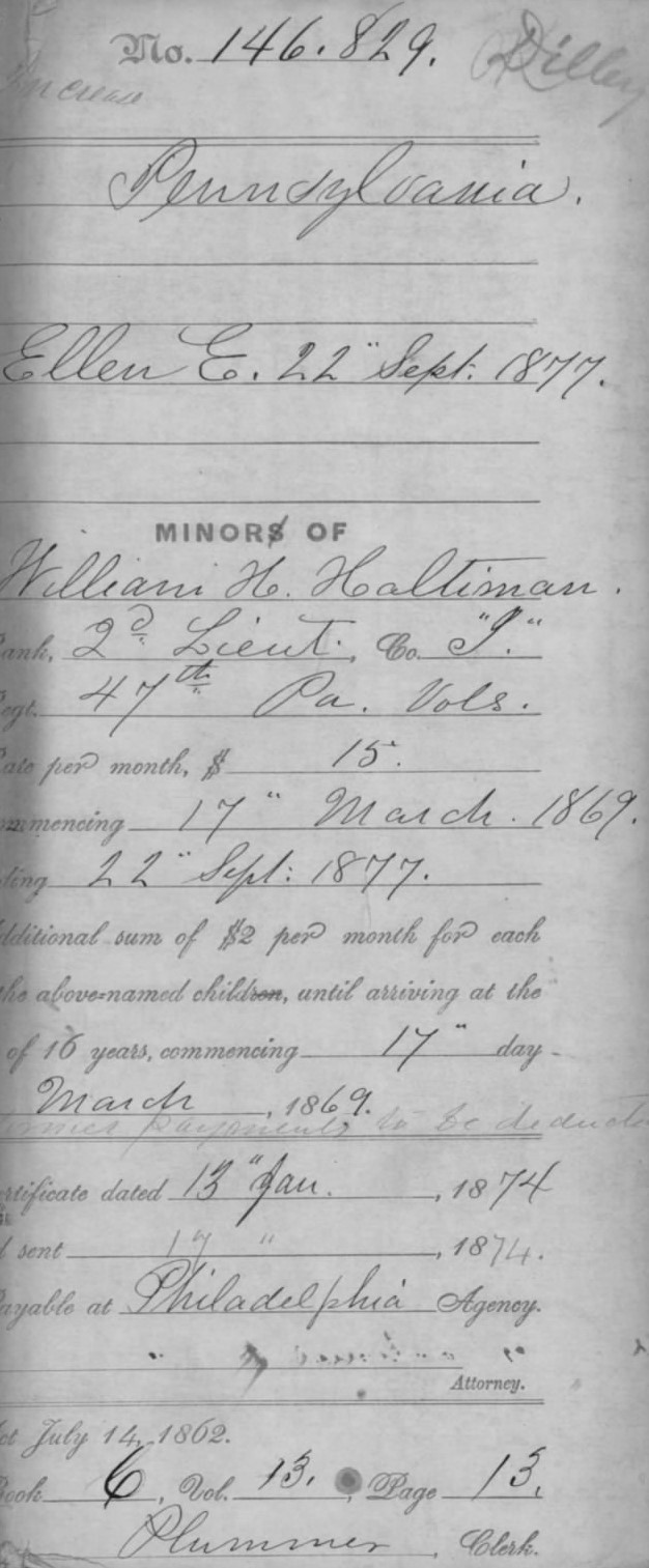 Ellen Haltiman’s U.S. Civil War Orphans’ Pension Award, 1877_U.S. Civil War Orphans’ Pension Files_pubdom