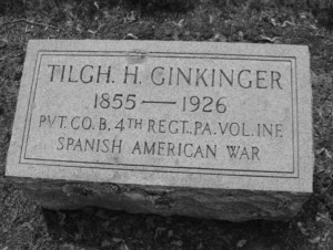 A private assigned to Company B of the 4th Pennsylvania Volunteers, Tilghman H. Ginkinger subsequently served with his regiment in Puerto Rico during the Spanish-American War. He then returned home to his wife and children in Allentown, where he resumed work as a cigarmaker. By 1900, Tilghman H. Ginkinger was living in Allentown’s Tenth Ward with his wife and their children, Annie, Margaret and Frederick. Sadly, Tilghman H. Ginkinger subsequently died at the age of seventy-one from acute indigestion while visiting relatives in Allentown on 17 January 1926. Following funeral services, he was laid to rest at the Greenwood Cemetery in Allentown.