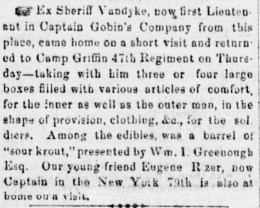 Quartermaster James Van Dyke procured a holiday surprise for the 47th Pennsylvania Volunteers (Sunbury American, 21 December 1861, public domain).