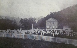 American Revolutionary War Patriot Johann Nicholas Schneider, great-grandfather of American Civil War soldier Timothy Matthias Snyder, was an organizer in 1788 of Himmel’s Lutheran Church in Rebuck, Pennsylvania and of its 1818 replacement with this stone building (photo circa 1899, public domain).