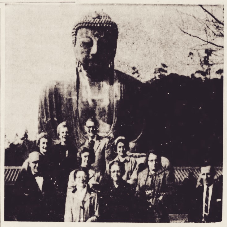 In 1963, Kit was part of a tour group that traveled to Japan, Thailand and Hong Kong. Lancaster’s Intelligencer Journal published a story about the group’s twenty-three-day adventure in its 2 April 1963 edition, which included a photo of their tour group standing in front of a large bronze Buddha in Japan.