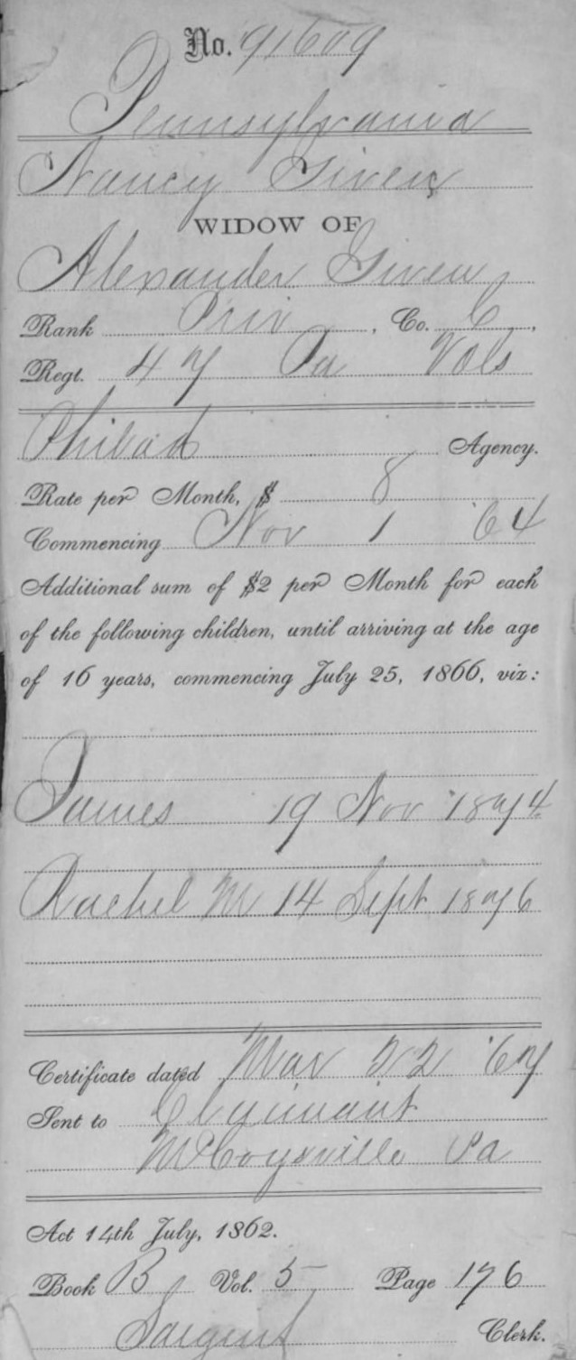 Nancy Given’s U.S. Civil War Widow’s Pension Award and Amount, March 1865, p. 2 (U.S. Civil War Widows’ Pension Files, U.S. National Archives and Records Administration, public domain).
