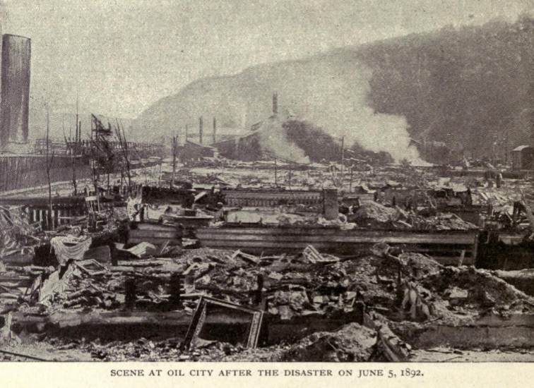 - “By Flame and Flood: Oil City and Titusville Stricken with Death” and “One Hundred Dead at Oil City.” Freehold, New Jersey: The Monmouth Inquirer, 16 June 1892.