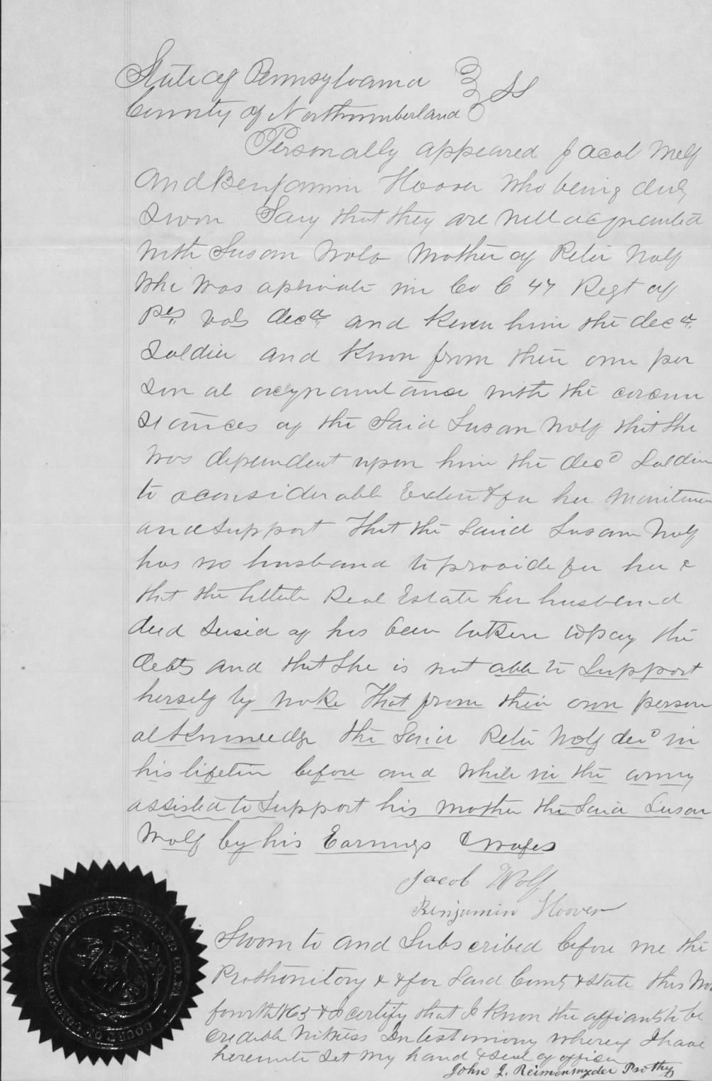 Susan Wolf’s U.S. Civil War Mother’s Pension Claim_Hoover-Wolf Affidavit, 4 Mar 1866_pubdom