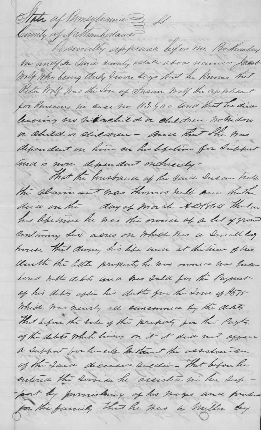 Susan Wolf’s U.S. Civil War Mother’s Pension Claim_Jacob Wolf’s Affidavit, 9 June 1866, pp. 1-2