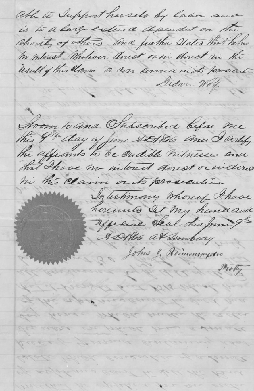 Susan Wolf’s U.S. Civil War Mother’s Pension Claim_Jacob Wolf’s Affidavit, 9 June 1866, p. 4_pubdom