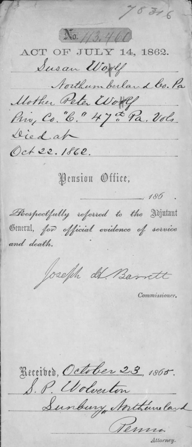U.S. Pension Bureau’s Confirmation of Peter Wolf’s 1862 Death_pubdom