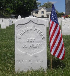 Headstone of Sergeant William Pyers, 47th Pennsylvania Volunteers, Co. C, Winchester National Cemetery, Virginia; he was killed in the fighting at the Cooley Farm during the Battle of Cedar Creek, Virginia, 19 October 1864 (courtesy of Randy Fletcher, 2014).