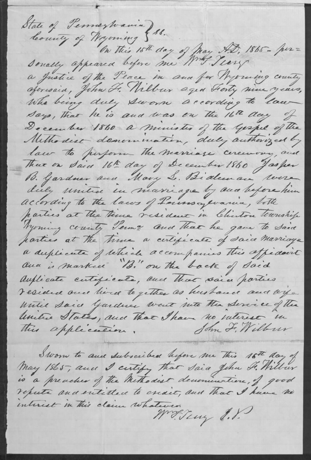 Mary Gardner’s 15 May 1865 Attestation of Her Marriage to Jasper Gardner (U.S. National Archives and Records Administration, public domain).