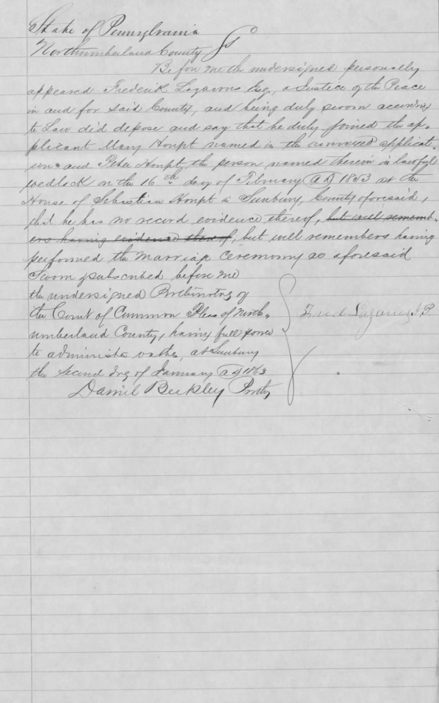 Minister’s Attestation Re: the 1853 Marriage of Peter and Mary Haupt (U.S. Civil War Widows’ Pension Files, U.S. National Archives and Records Administration, public domain).