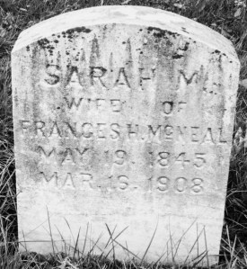 - “Marie V. McNeal” (obituary of an infant granddaughter of Francis Hough McNeal and a daughter of William Cook McNeal), in “Death Record.” Altoona, Pennsylvania: Altoona Times, 11 January 1904.