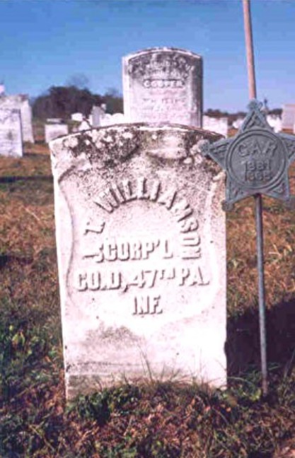 Corporal James T. Williamson’s military headstone, Landisburg Cemetery, Landisburg, Pennsylvania, 2002 (used with permission, courtesy of Judith Warner Bookwalter).