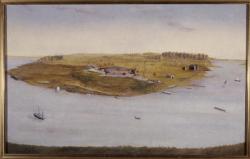 Following his enrollment in Harrisburg, Dauphin County, Samuel S. Auchmuty was officially mustered in on 6 December 1846 as a Private with Company G of the 2nd Pennsylvania Infantry. Beginning on 9 January 1847, members of the 2nd Pennsylvania boarded ships in Pittsburgh, and were transported down the Ohio River to New Orleans, Louisiana, where they disembarked and took up residence at Camp Jackson. On 29 January, they climbed back aboard ship, departed from New Orleans through the Gulf of Mexico, and headed for the Isle of Lobos, where they dropped anchor on 13 February. According to Hackenburg, “The men disembarked and cleared camp areas, but one shipload of troops—three companies of the 2nd Pennsylvania Regiment—was quarantined aboard ship due to illness among the troops.”