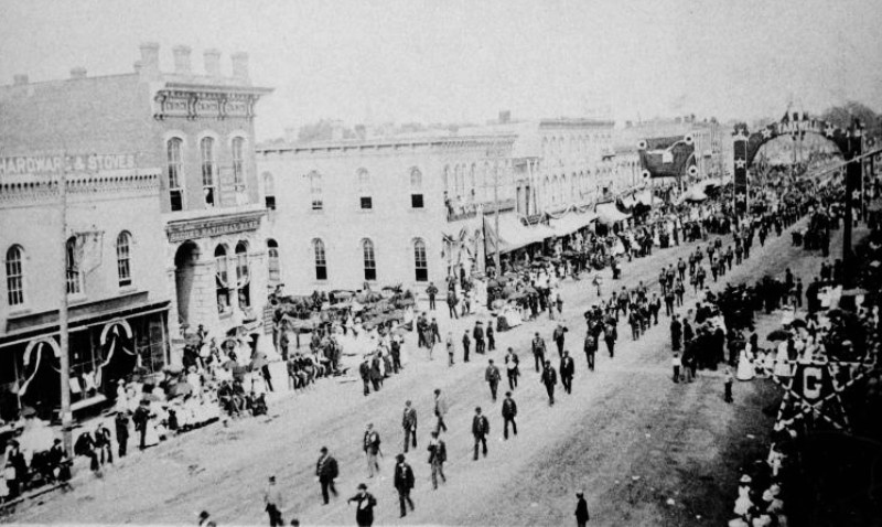 Members of the Grand Army of the Republic (G.A.R.) paid tribute to the late U.S. President Ulysses S. Grant during a memorial parade in Galesburg, Illinois on 8 August 1885 (public domain; click to enlarge).