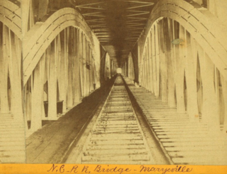 Northern Central Railway bridge, Marysville, Pennsylvania, circa late 1860s-early 1870s (public domain).