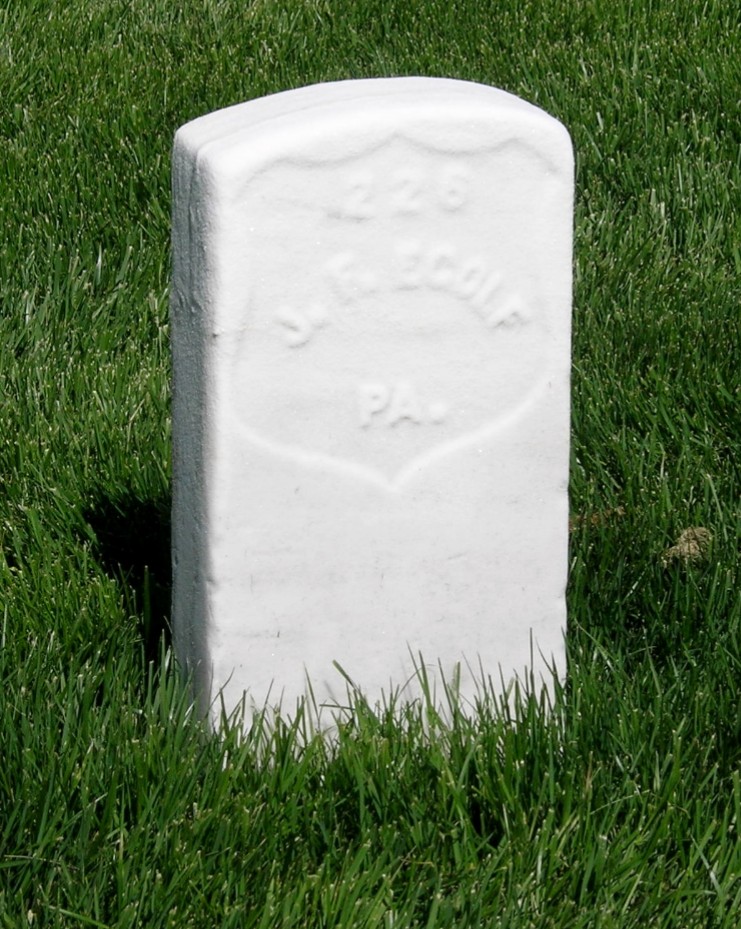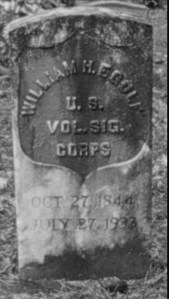 Military headstone of 47th Pennsylvania Volunteer John F. Egolf’s younger brother, William Henry Egolf, Signal Corps, U.S. Volunteers, Pinecrest Memorial Cemetery, Mena, Arkansas (public domain).