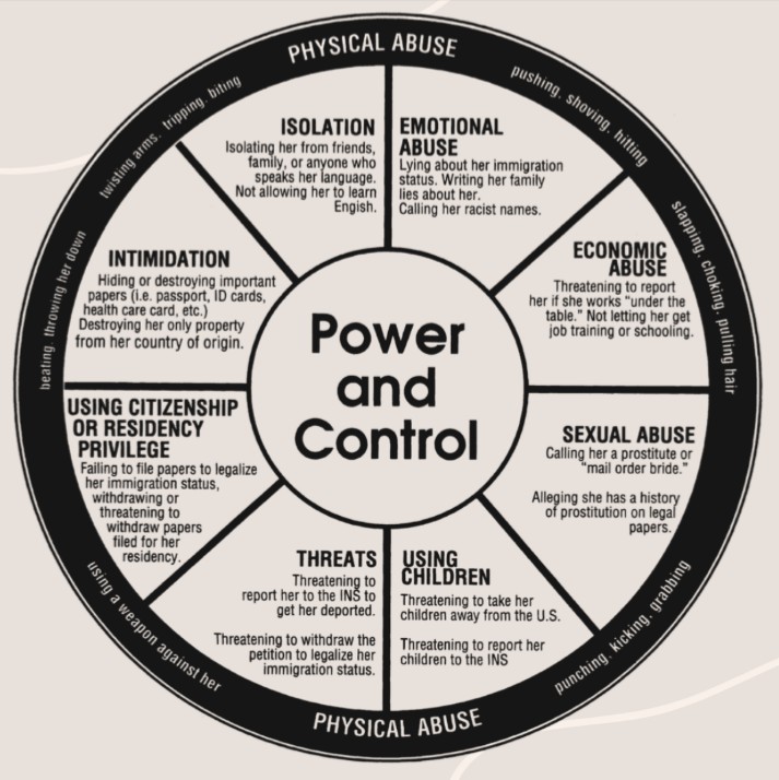 John F. Egolf and his mom, Susan, were able to escape their family’s cycle of domestic violence with the support of friends and neighbors (domestic violence power and control wheel, public domain image; click to enlarge).