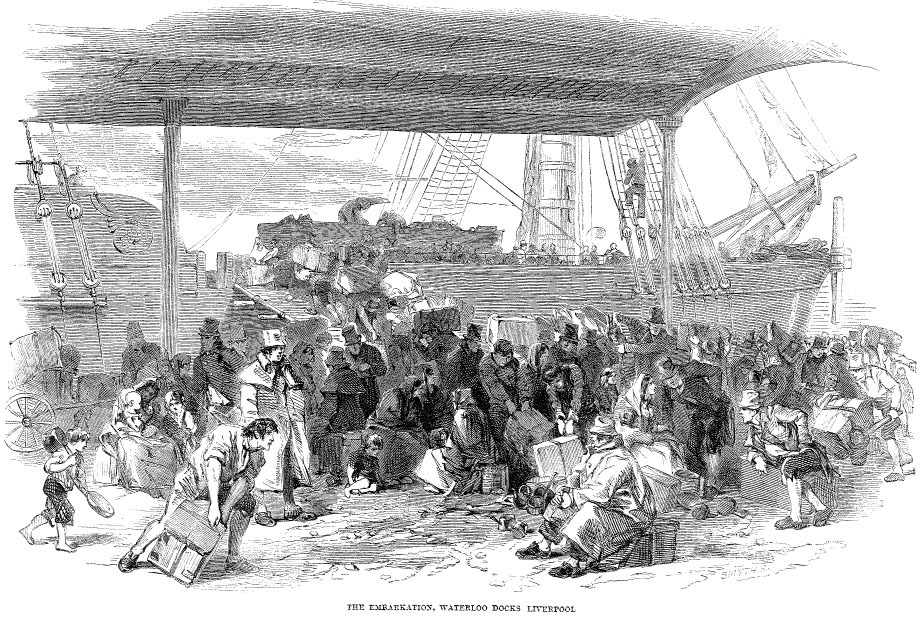 While the exact year and point of emigration are not yet known for the parents of Wesley White, it is likely that his parents experienced a scene much like the one depicted in “The Embarkation,” The London Illustrated, 6 July 1850 (public domain).