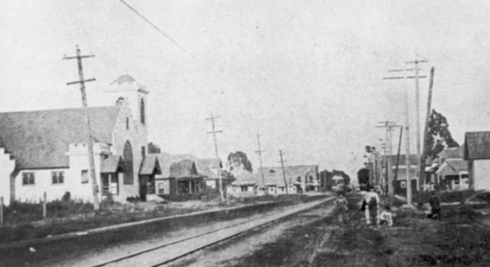 Looking east on Gardena Boulevard in the town of Gardena, Los Angeles County, California, 1900 (public domain; click to enlarge).
