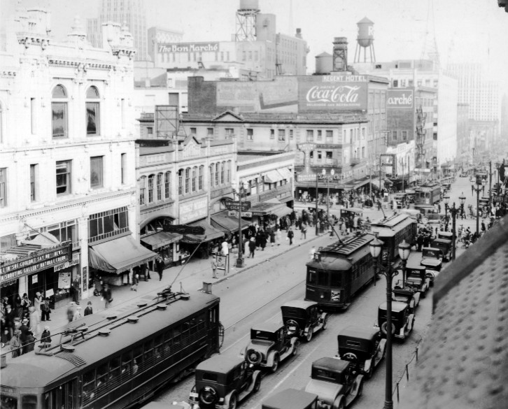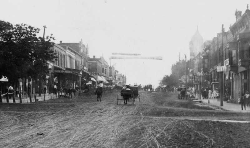 Main Street, looking east, Hiawatha, Kansas, circa late 1890s to early 1900s (public domain; click to enlarge).