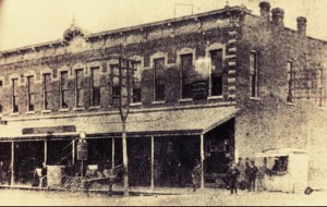 The Chilcote Building at the northeast corner of 1st and Hastings streets in Hastings, Adams County, Nebraska, shown here in 1881, was the first site of Hastings College (public domain).