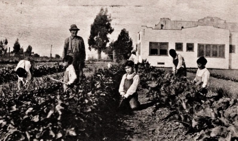 Students of the Methodist-run Spanish-American Institute in Gardena, California worked as farm laborers in Gardena during the 1920s (public domain; click to enlarge).