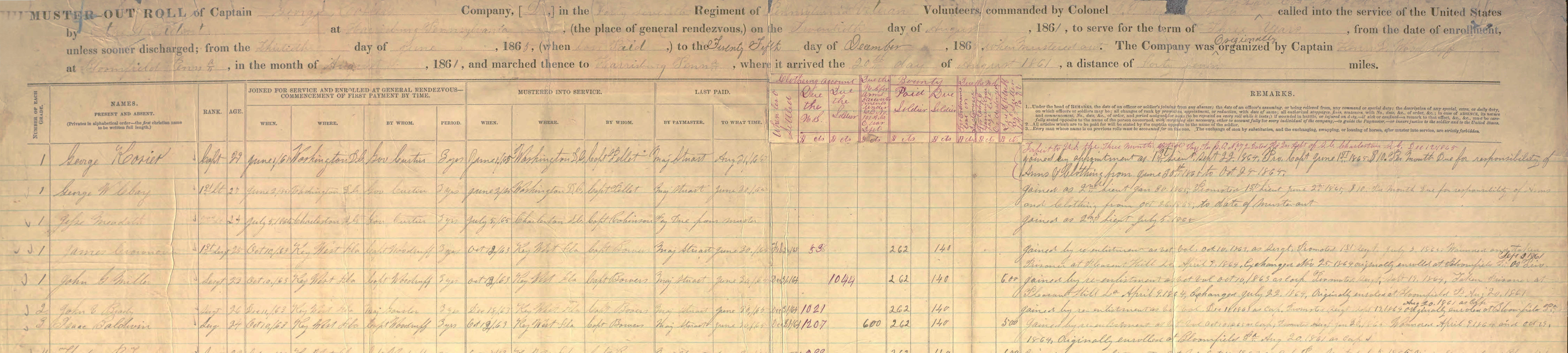 9. Miller, John G., in Civil War Muster Rolls, 1861-1866 (Co. D, 47th Pennsylvania Infantry). Harrisburg, Pennsylvania State Archives.