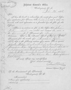 That same letter also noted that he had appeared on the regiment’s muster rolls for March and April 1864, and that he had been moved from the ranks of unassigned men to the roster of Company E, the unit with which he would serve for the remainder of his life.