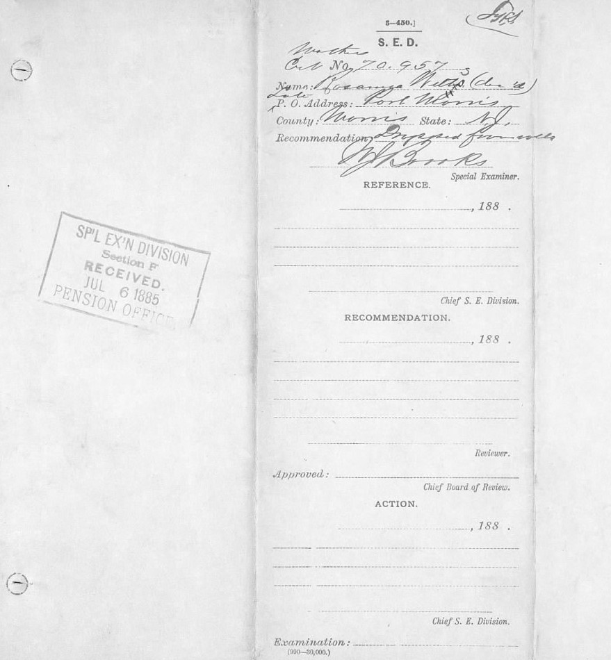 Brooks’ Documentation That Rosanna Witz Was Dropped from Pension Rolls (U.S. Civil War Mothers’ Pension Files, U.S. National Archives and Records Administration, public domain).
