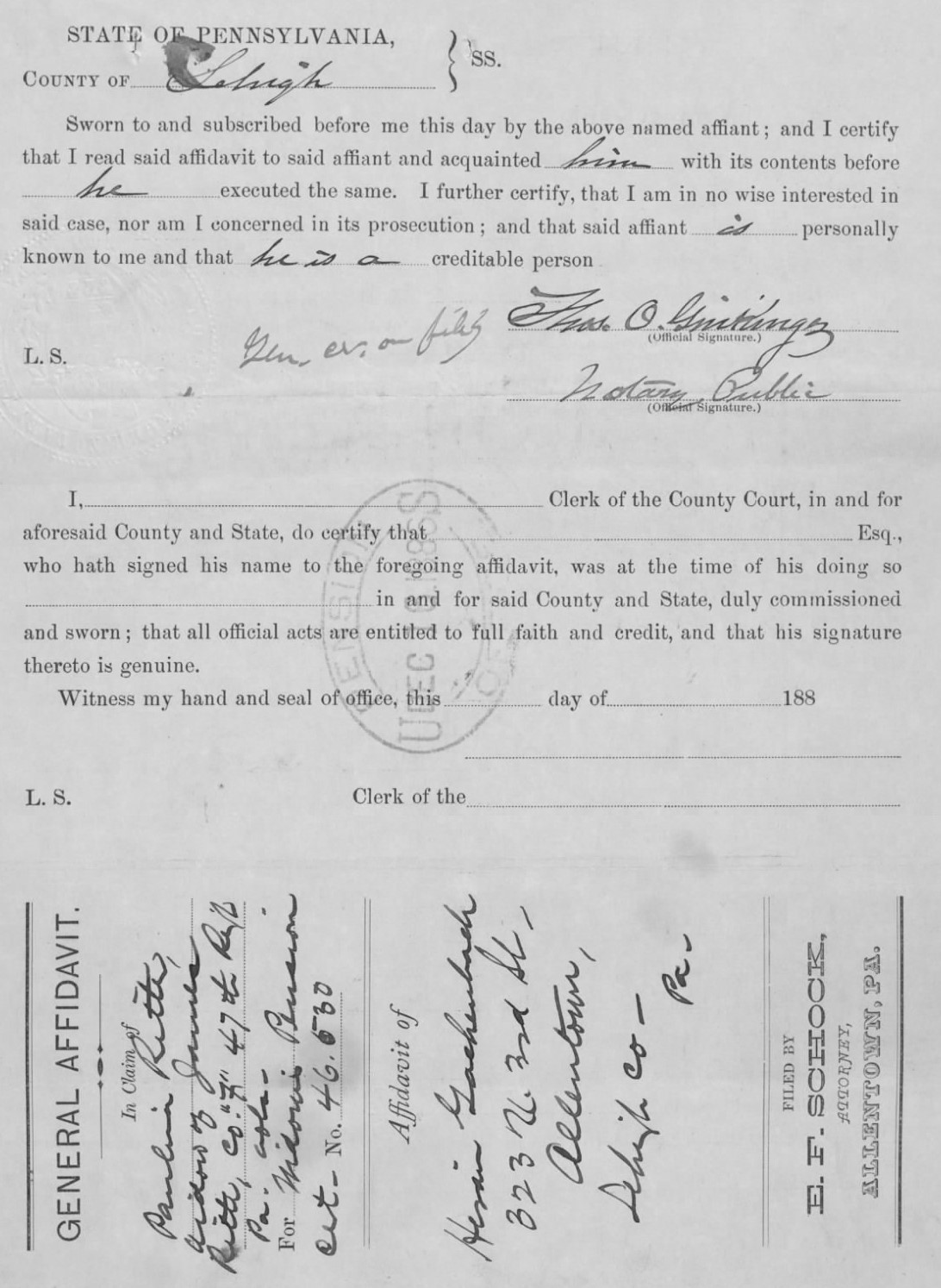 Pauline Ritter Knauss’s U.S. Civil War Widow’s Pension Restoration Claim, Gackenbach Affidavit, 30 Nov 1886, p. 2