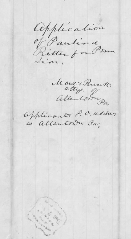 Pauline Ritter Knauss’s U.S. Civil War Widow’s Pension Restoration Claim (declaration for restoration of pension, 26 July 1886, cover, U.S. Civil War Widows’ Pension Files, U.S. National Archives and Records Administration, public domain).