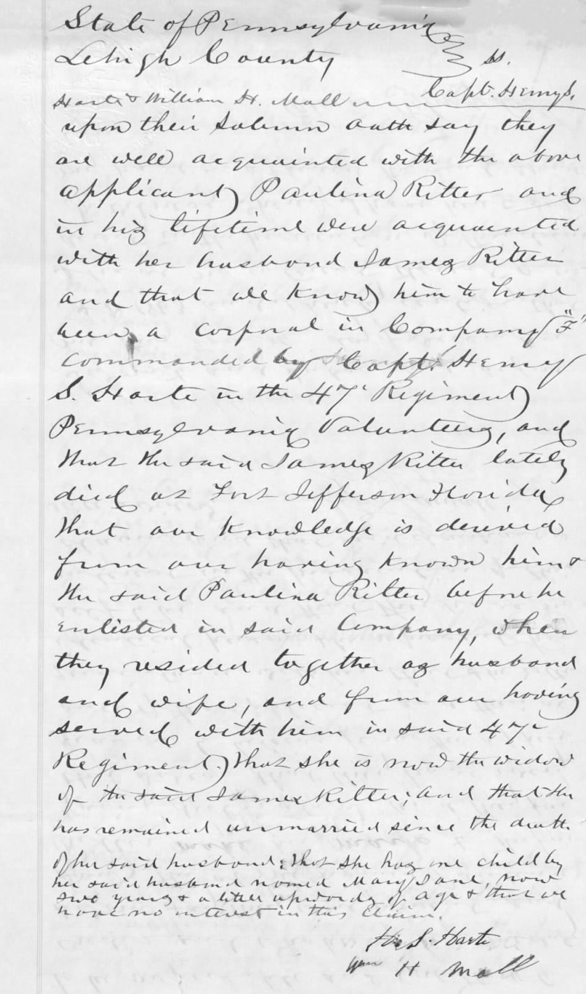 Pauline Ritter’s U.S. Civil War Widow’s Pension Restoration Claim, Harte-Moll Affidavit, 2 Dec 1883, pp. 3-4_pubdom