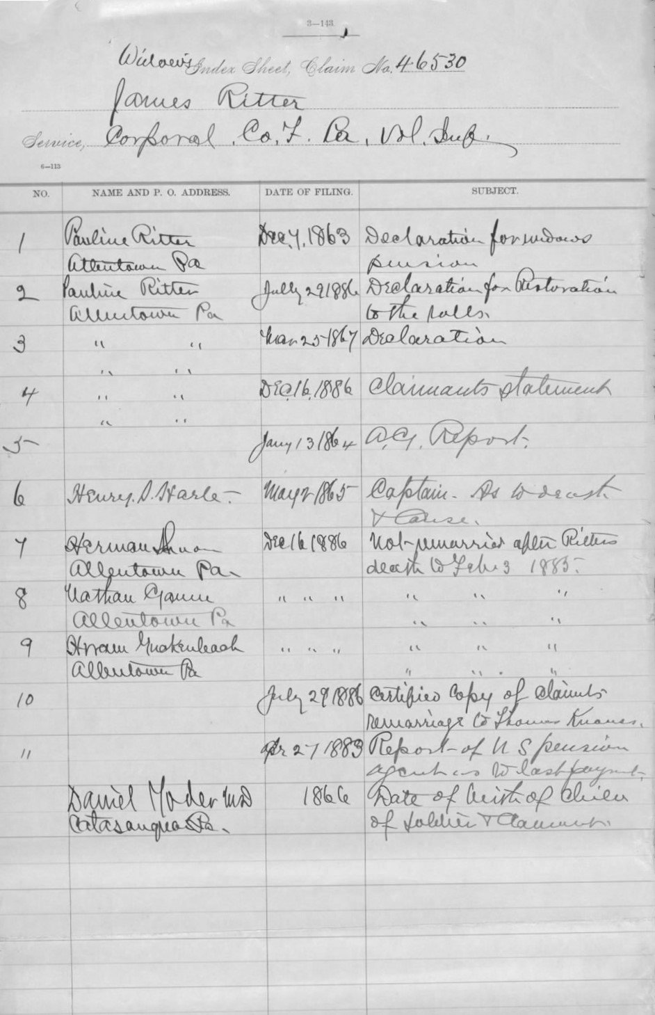 Pauline Ritter’s U.S. Civil War Widow’s Pension Claim History, pp. 1-2_pubdom