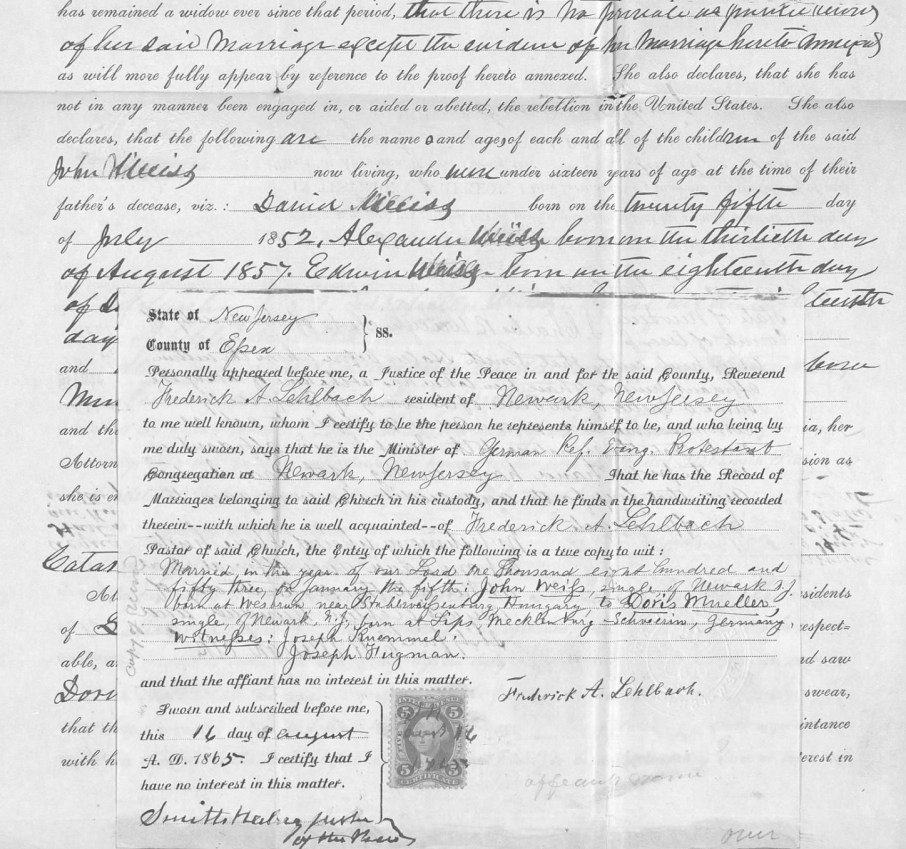 Minister’s Attestation to the Marriage of John and Andoras Weiss (U.S. Civil War Widow’s Pension File of Andoras Weiss, U.S. National Archives and Records Administration, public domain).